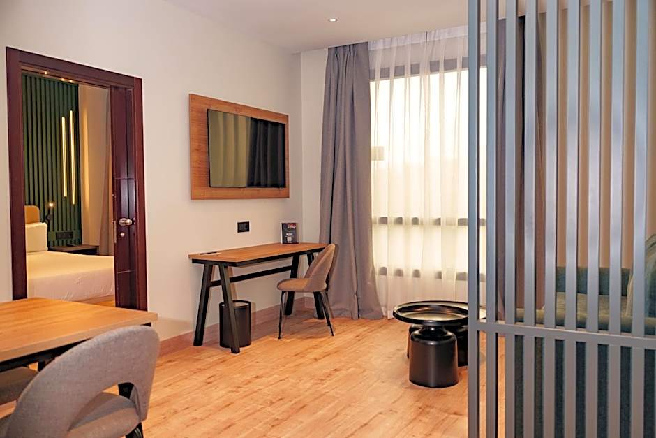 This suite features 3 bedrooms and 2 bathrooms with a hairdryer. There is a separate seating area with a flat-screen TV, a mini-bar, work desk, safe, and free WiFi. There is also air conditioning and heating. A kitchen area is available, which guests can use for an additional charge of EUR 30 per stay.